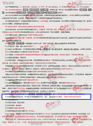 目前,社會各界呼吁環境安全、環境健康等熱點問題。混凝土外加劑中含有的游離甲醛、游離萘等有害身體健康的成分,含量應控制在國家有關標準規定范圍內。對于含有尿素、氨類等有刺激性氣味成分的外加劑,不得用于房屋建筑工程中。因此,以此內容為核心,向外輻射相關知識點的可考性較大,需重點把握。
