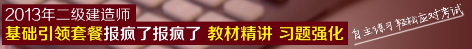- 環(huán)球網(wǎng)校二級建造師頻道制定了一個2013年二級建造師考試預(yù)學(xué)習(xí)計劃表(包括每科目每周學(xué)習(xí)的章節(jié)內(nèi)容,需要做的章節(jié)練習(xí))。本計劃表為二級建造師基礎(chǔ)階段學(xué)習(xí)計劃,幫助考友全面系統(tǒng)的掌握所有知識點。計劃于2013年01月01日開始執(zhí)行,于2013年04月07日結(jié)束。考生可根據(jù)本表的提示,結(jié)合自己的工作,學(xué)習(xí)情況進行細(xì)化,并按網(wǎng)校要求完成聽課、做題的學(xué)習(xí)任務(wù),基本可滿足考試需要。同時我們會相繼推出習(xí)題階段計劃、沖刺階段計劃,敬請期待!【提示,請廣大考生朋友們按照本專題的計劃選擇學(xué)習(xí)科目,完成每周的學(xué)習(xí)任務(wù)。】
