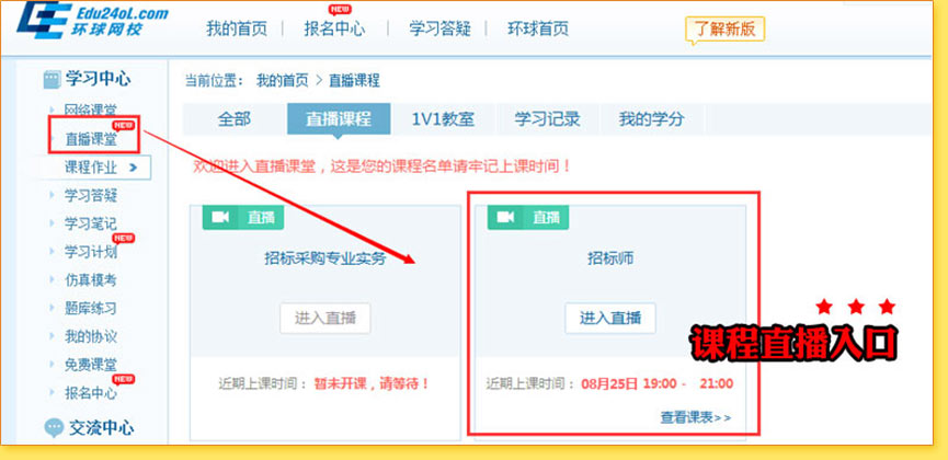 9月9日19點(diǎn)登陸用戶中心,點(diǎn)擊直播課堂選項(xiàng),找到課程直播入口