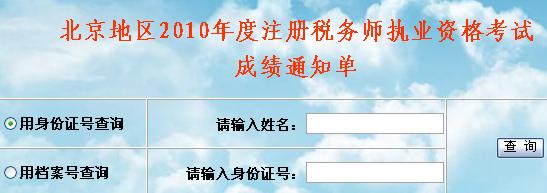 北京2010年注冊(cè)稅務(wù)師考試成績查詢
