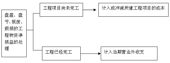 盤盈、盤虧、報廢、毀損的工程物資凈損益的會計處理如下圖所示: