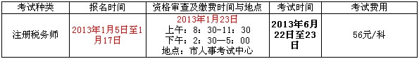 安徽宣城2013年度注冊稅務師考試報名1月5日起