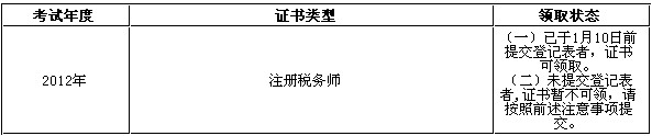 四川眉山2012注冊稅務師考試證書領取通知