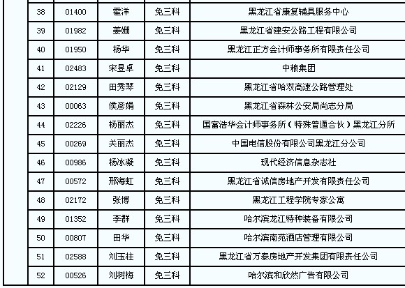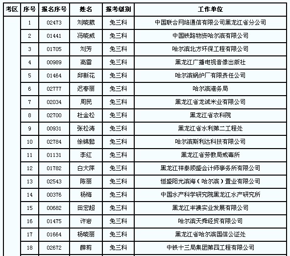 黑龍江省直2013年注冊稅務師考試免試復核人員名單通知