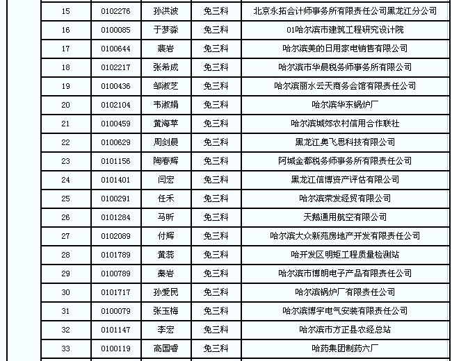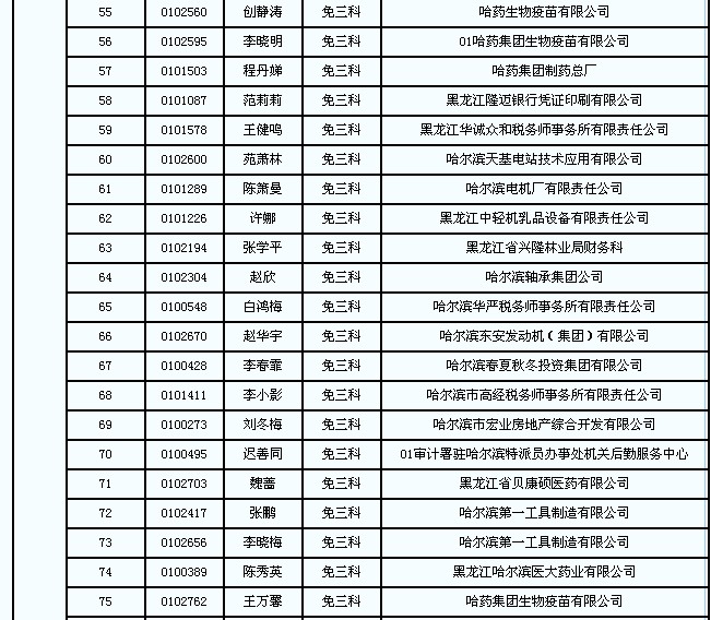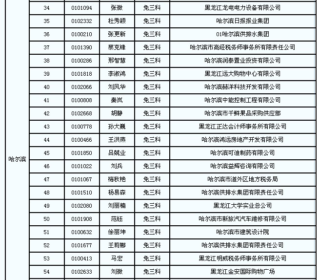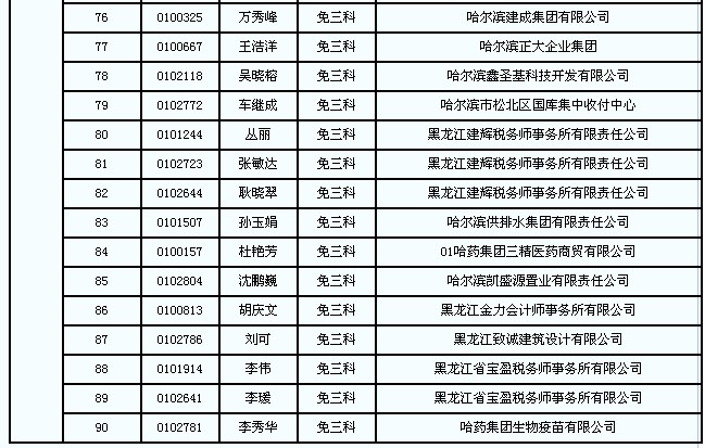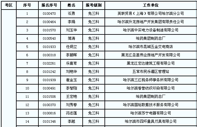 哈爾濱2013年注冊稅務師考試免試復核人員名單通知
