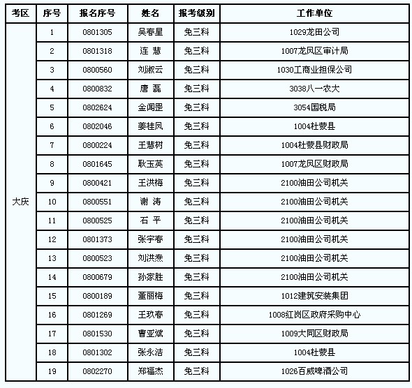 大慶2013年注冊稅務師考試免試復核人員名單通知