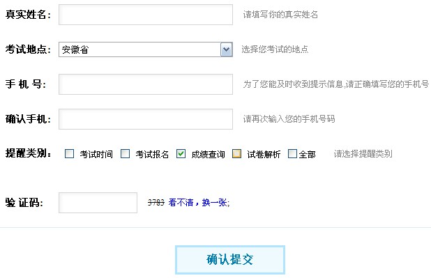 2013年注冊稅務師考試已順利結束,根據以往成績查詢時間推斷在8月份公布,網校根據學員要求提供了成績查詢預約平臺,第一時間公布成績查詢信息。考生可根據以下內容信息進行填寫,此系統(完全免費),