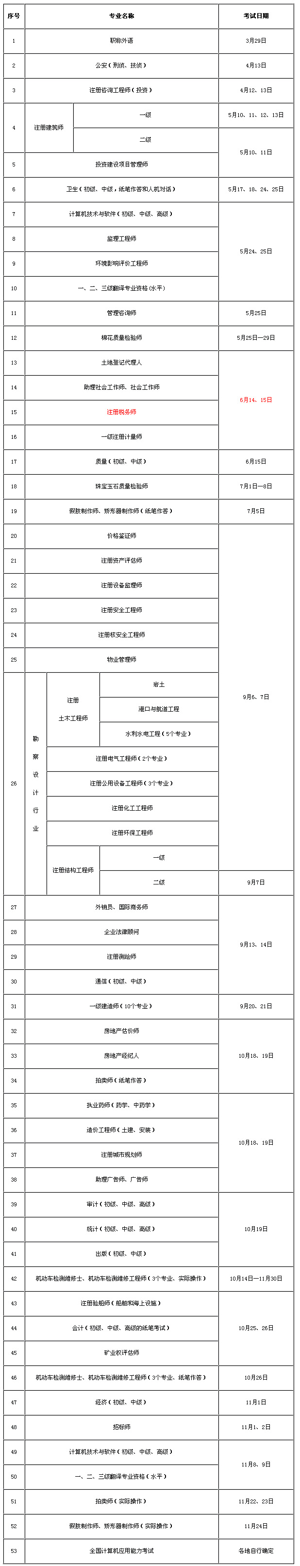 為進一步做好專業技術人員資格考試的規劃與管理工作,經與有關部門和相關考試管理機構研究,現將2014年度專業技術資格考試計劃及有關問題通知如下: