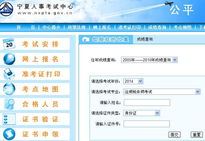查詢方式:登錄“寧夏人事考試中心”→點擊“成績查詢”→選擇“2014”→注冊稅務師考試。