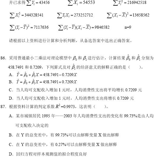(三)為分析某市城鎮(zhèn)居民1995年――2003年人均可支配收入和人均消費(fèi)性支出之間的關(guān)系,取得如下統(tǒng)計資料: