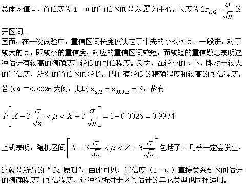 區間估計要解決的問題是,對于事先給定的小概率α(0<α<1),求出置信度為(1-α)的置信區間。