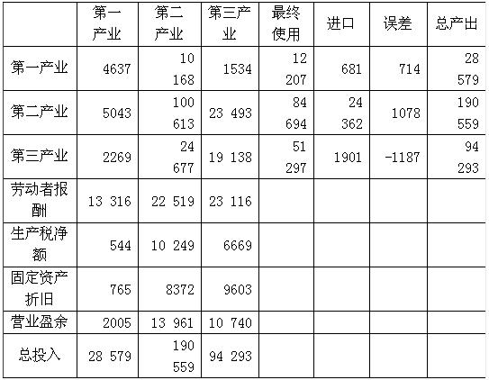 (一)我國2002年三次產業投入產出簡表如下: