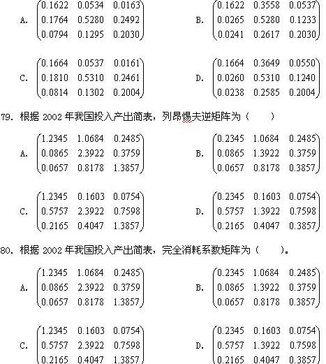 78.根據2002年我國投入產出簡表,直接消耗系數矩陣為( )。