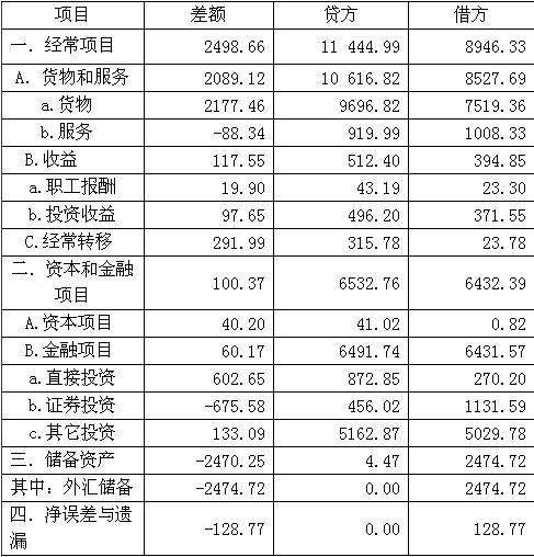 2006年中國國際收支平衡表 單位:億美元