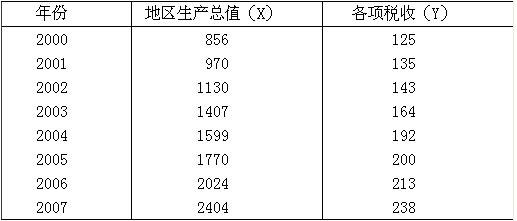 (三)某地區2000—2007年地區生產總值與稅收收入資料如下表所示: