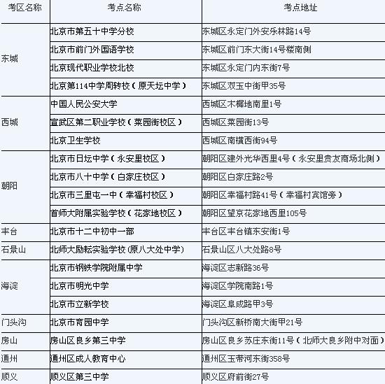 2011年北京統(tǒng)計從業(yè)資格考試地區(qū)考點一覽表