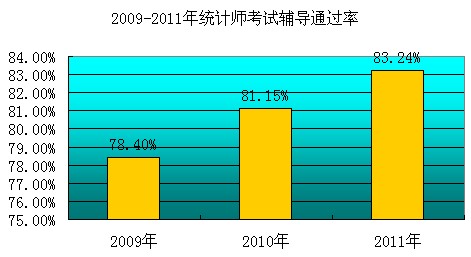 環球網校(www.edu24ol.com)通過對網校學員的回訪及學員的成績反饋,總結出網校2011年統計師考試輔導各科通過率分別為:統計相關知識通過率為87.96%。統計業務知識通過率為78.52%,平均通過率為83.24%。
