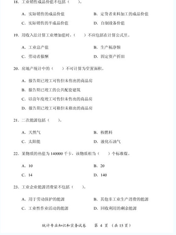 摘要 初級統(tǒng)計師《統(tǒng)計專業(yè)知識和實務(wù)》真題及答案(2)