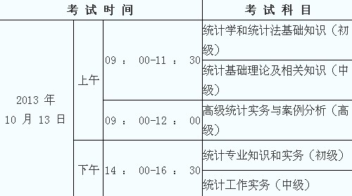 牡丹江2013年統計師考試報名時間5月10日- 23日