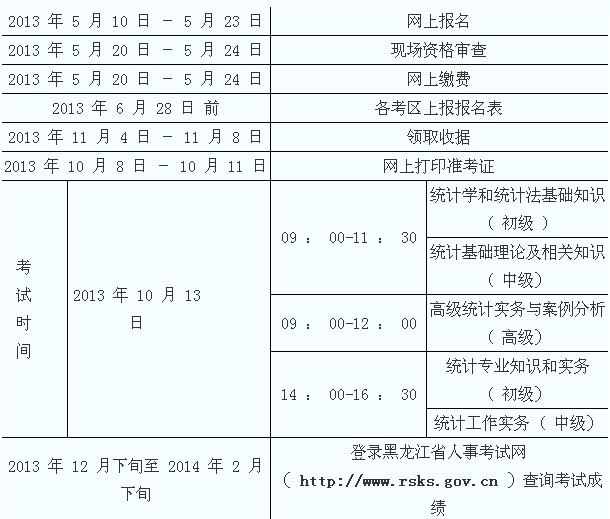 2013 年度統計專業技術資格考試由省人事考試中心統一在哈爾濱市設置考場,其他市(地)不設考場。
