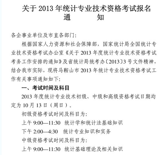 摘要 馬鞍山2013年統(tǒng)計(jì)師考試報(bào)名