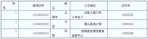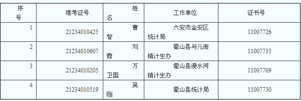 六安市2012年統計師考試合格人員名單通知