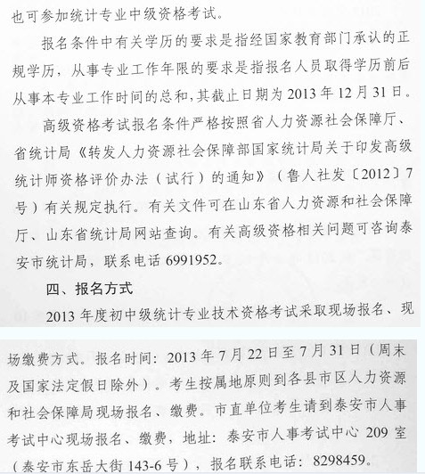 泰安市2013年統(tǒng)計(jì)師考試報(bào)名時(shí)間7月22日-31日