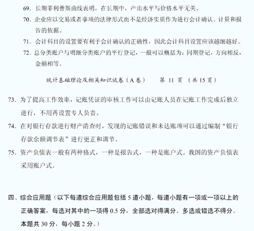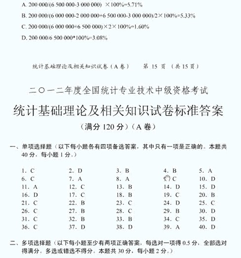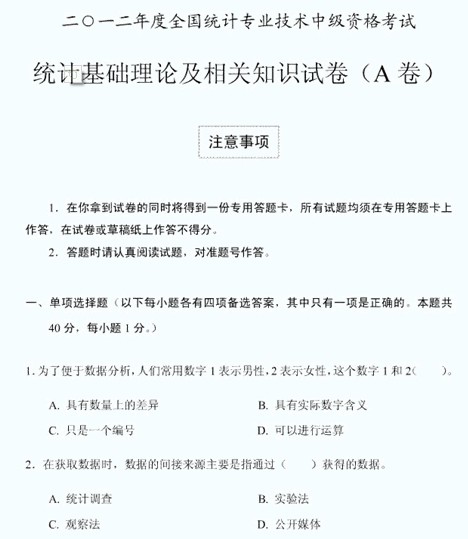 2012年中級(jí)統(tǒng)計(jì)師《統(tǒng)計(jì)基礎(chǔ)理論及相關(guān)知識(shí)》考試真題及答案