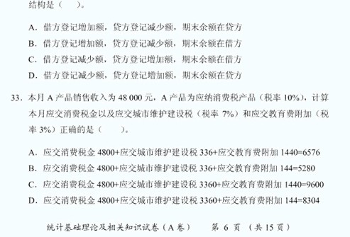 - 2025年中級(jí)統(tǒng)計(jì)師真題及答案:10月19日上午場(chǎng)+下午場(chǎng)(2科目)2025-10-21