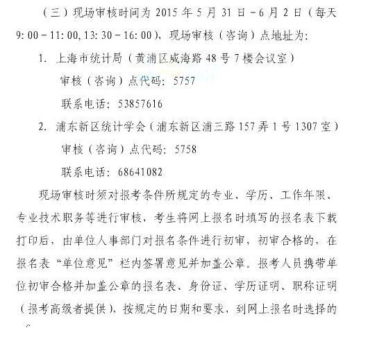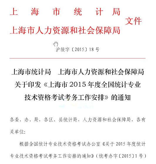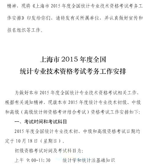 上海2015年度全國統計專業技術資格考試考務工作的通知