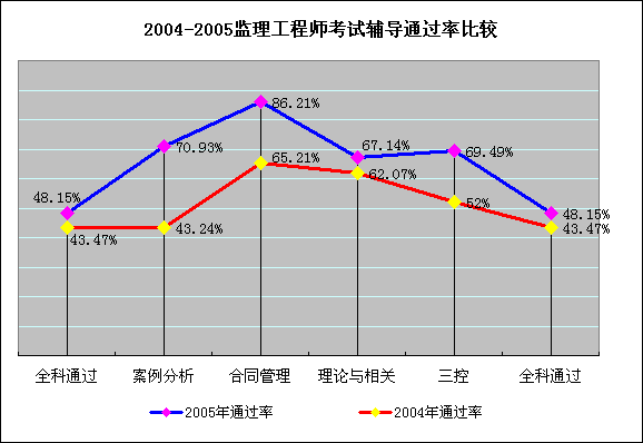 在王雙增老師團隊的努力下,2005年網校監理工程師考試輔導再創佳績,輔導效果各項指標均高于2004年。