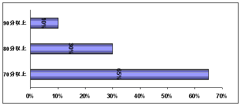 在回訪的過程之中,我們還對學(xué)員的成績進(jìn)行了詢問。對通過考試的學(xué)員的成績分布,我們大致進(jìn)行了分析: