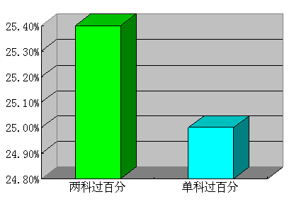兩科成績都在100分以上的在通過者中占25.4%,單科成績超過100分的占25%。