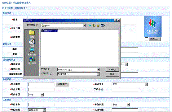(5) 讀入照片,點擊頁面右上角圖片下的“瀏覽”,出現選擇照片存儲路徑頁面,如圖(3-3)