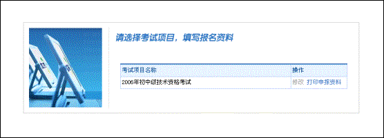 如上圖(2-2),目前所申報的項目名稱為“2006年初中級技術資格考試”,點擊右側“報考”,即可進入申報資料填寫頁面,如圖(3-1)