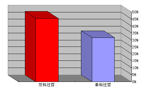 (二)成績過百學員比例。報名網校兩科學習并成績都過百分的學員占所有雙科學習學員的比率為45.5%,報名網校至少單科學習,并成績高于百分的學員占總學員數的比例為31.7%,該比例中不包含雙科過百學員。