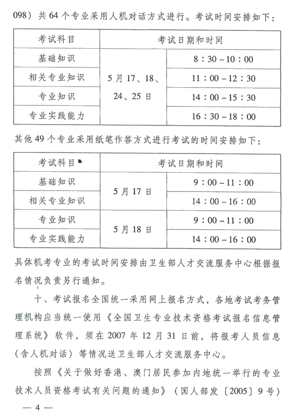 關(guān)于2008年衛(wèi)生專業(yè)技術(shù)資格考試有關(guān)問題的通知