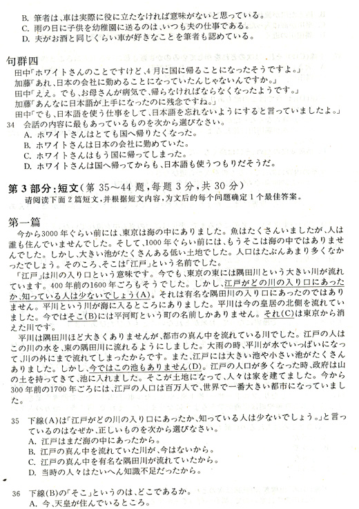 - 2009年職稱日語考試C級真題(三)2011-07-28