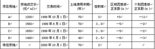 2.采用市場比較法估算出待估宗地于2000年10月1日土地使用年限為70年的單位土地面積價格