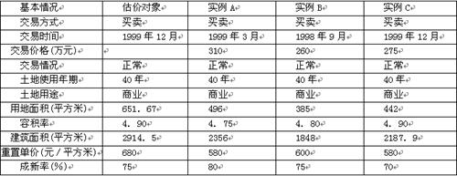 估價人員對收集的多宗交易實例進行比較分析后,選擇了三宗交易實例作為比較實例,基本情況見下表: