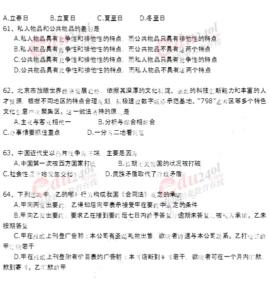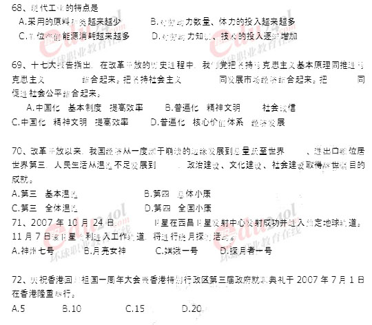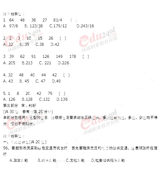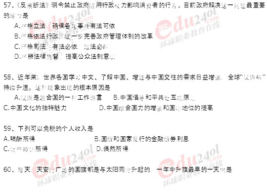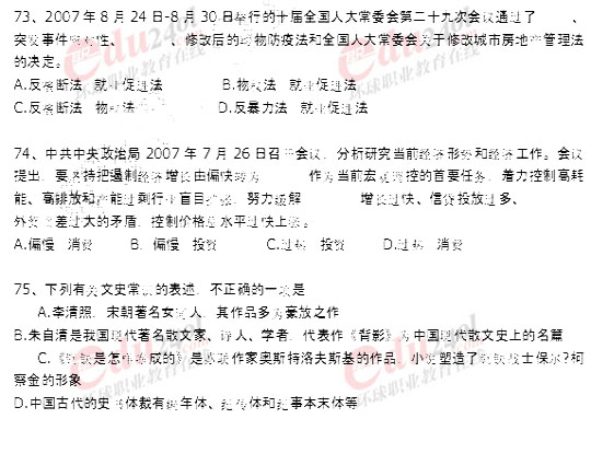 北京2008年公務員考試行政能力測試真題