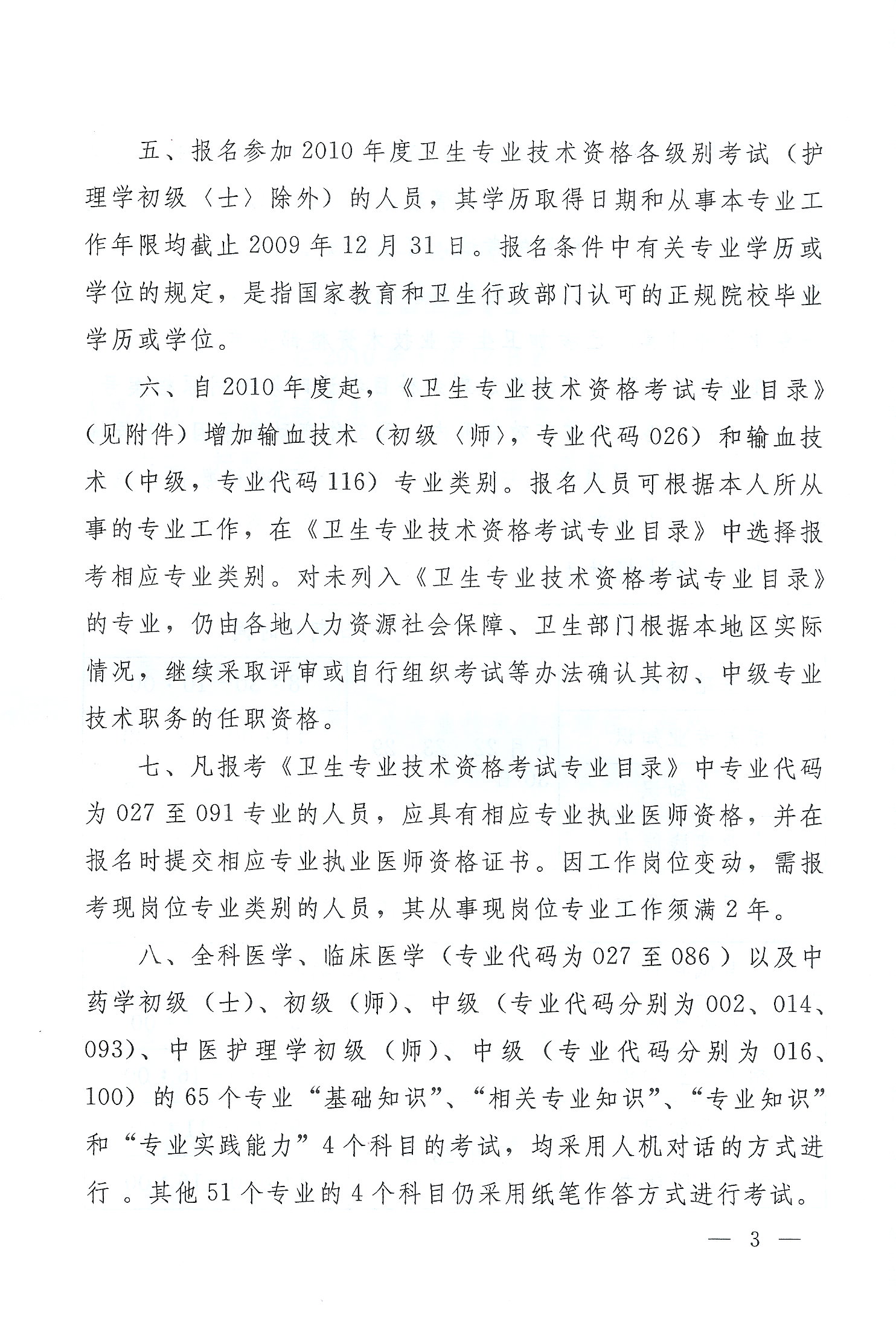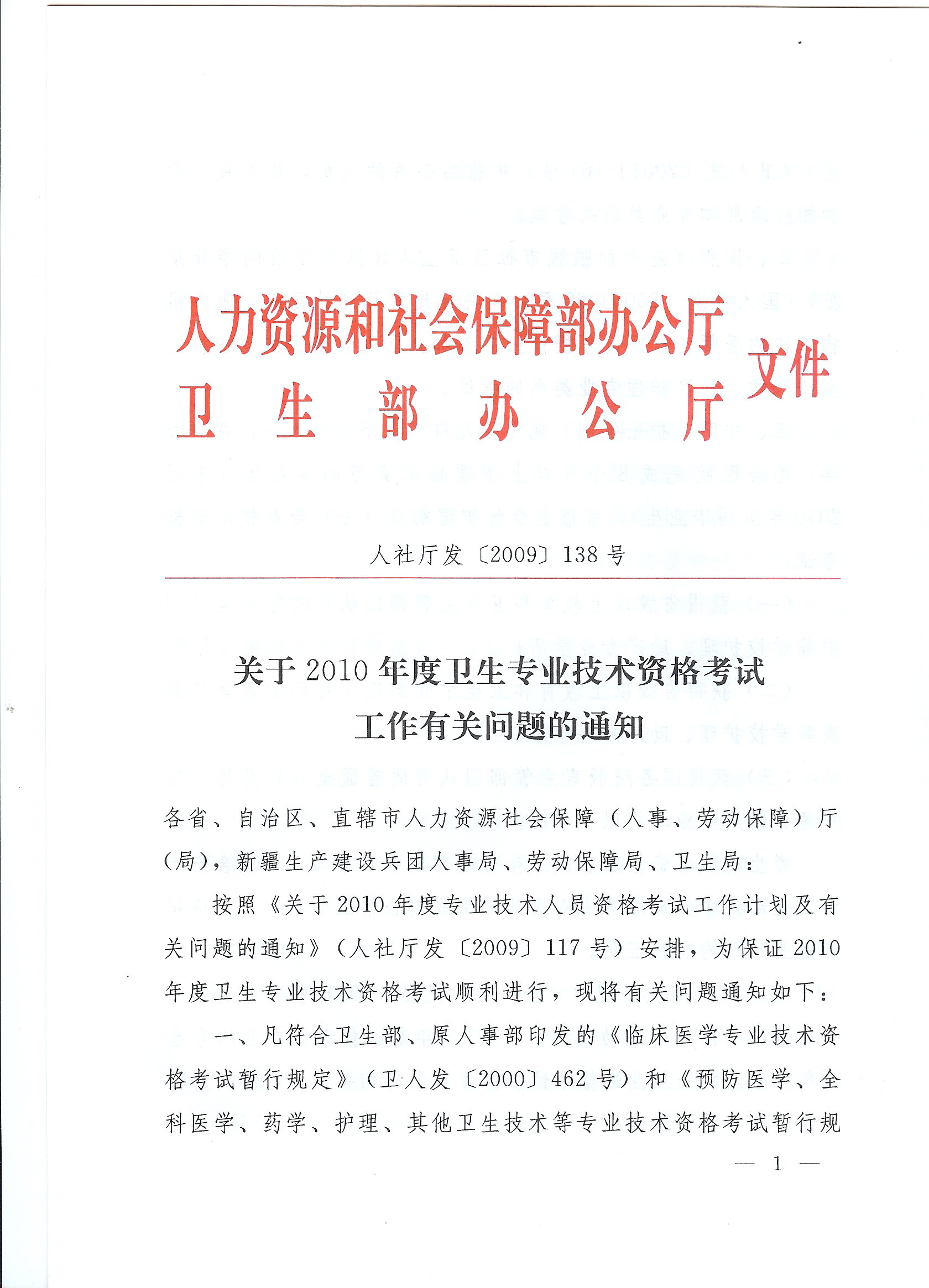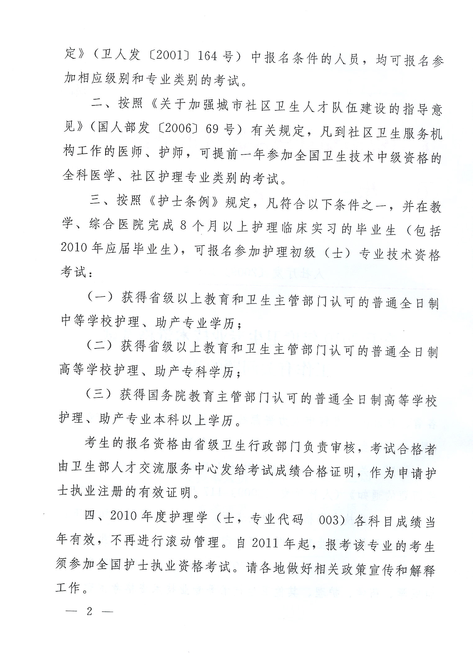 2010年衛(wèi)生專業(yè)技術(shù)資格考試工作有關(guān)問題的通知