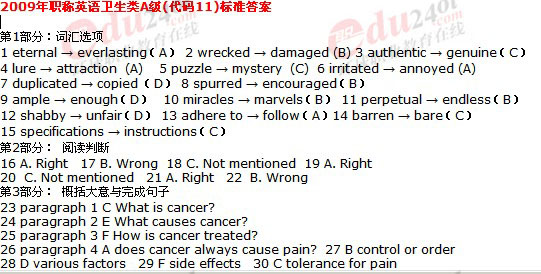 09年職稱英語考試衛生A試卷答案