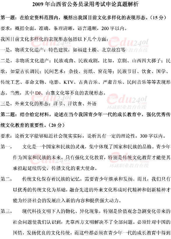 當前位置: 首頁 > 國家公務員 > 國家公務員歷年試題 > 2009年山西省公務員錄用考試申論真題答案