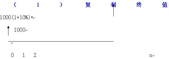 例如,將1000元存入銀行,年利率為10%,一年以后的復利終值為1000(1+10%);兩年以后的復利終值為1000(1+10%)(1+10%);三年以后的復利終值為1000(1+10%)(1+10%)(1+10%)……………n年以后的復利終值為1000(1+10%)ⁿ