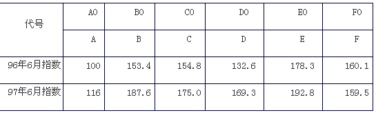 該合同的原始報價日期為1996年6月1日。1997年6月完成的預算進度數為工程合同總價的6%,結算月份的工資、材料物價指數如下表: