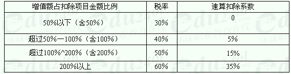 應納稅額=增值額×適用稅率一扣除項目金額×速算扣除