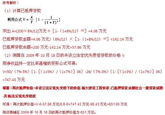 請計算該商鋪2009年10月18日的再次抵押價值。
