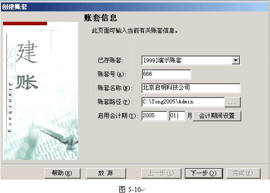 3.賬套路徑:用來輸入新建賬套將要被放置的路徑。如“C:\Tong2005\Admin”
