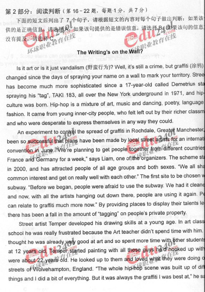- 職稱英語綜合C閱讀判斷真題及答案2017-07-03